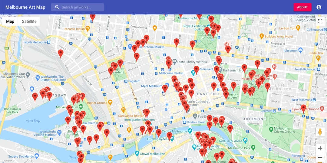 Melbourne's public art displayed on an interactive map.