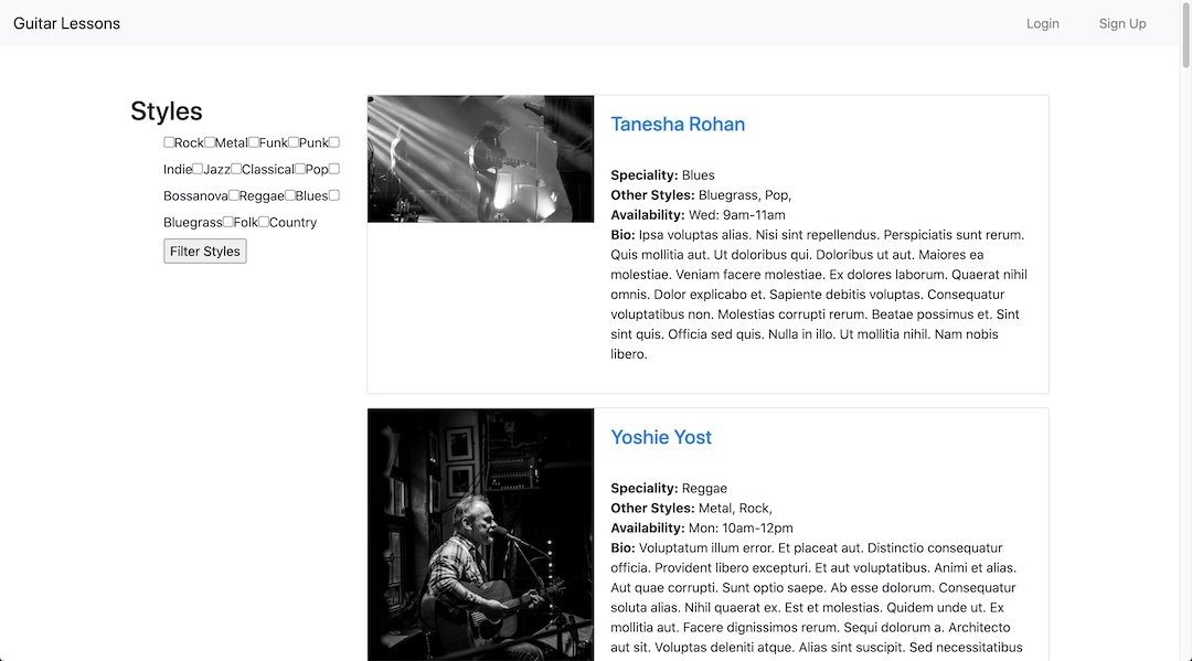 A two-sided marketplace connecting guitar teachers with students looking to learn the guitar in a specific style and to conduct the lesson over a webcam.