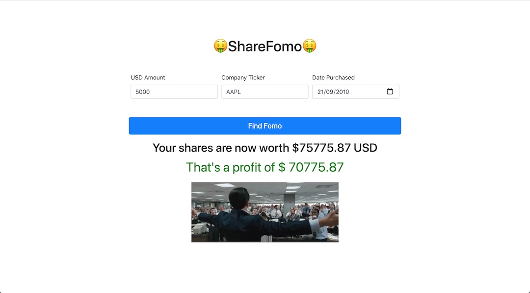 Using a Shares API, find out the current value and profit/loss on shares bought up to 20 years ago.